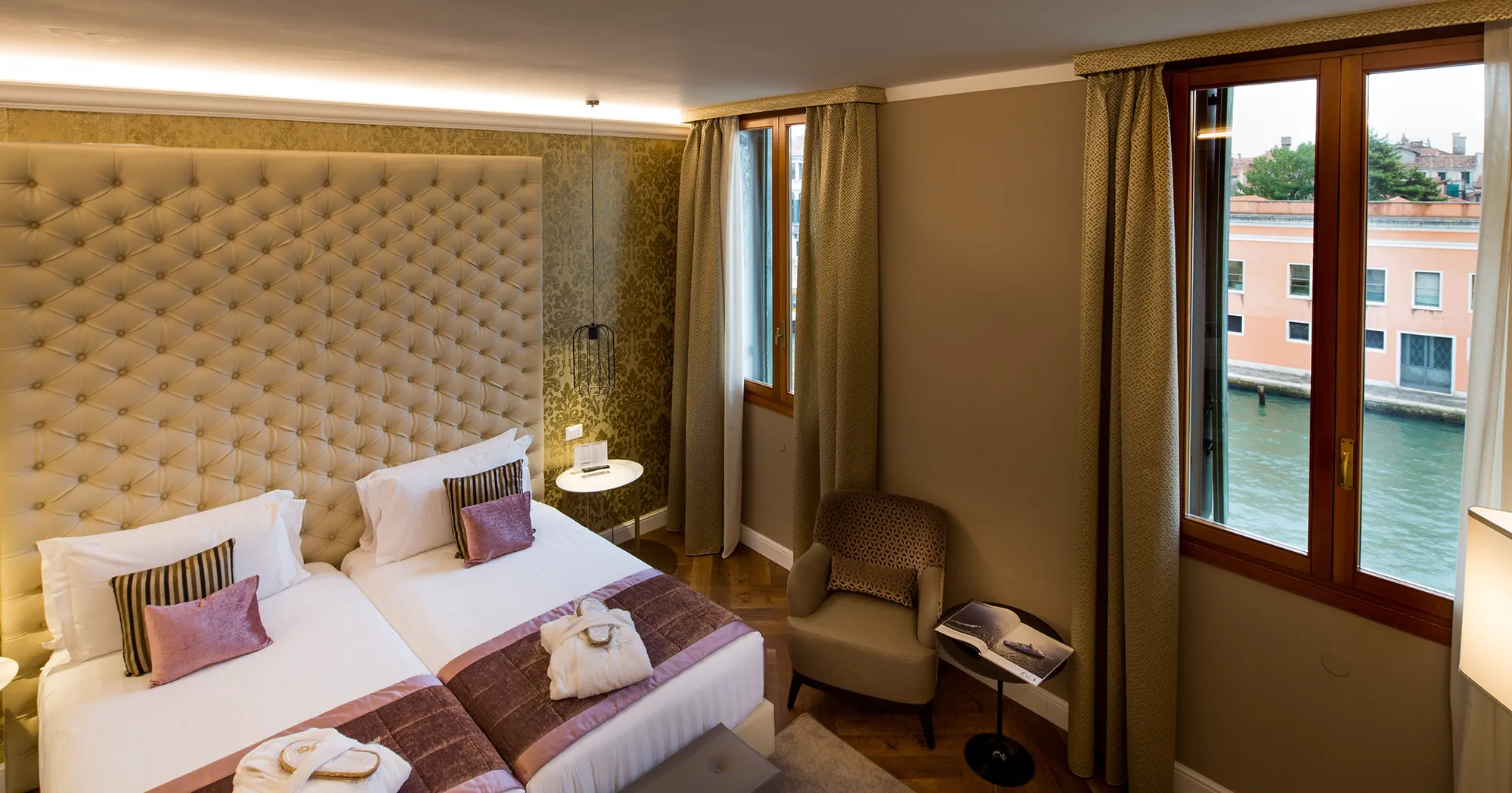 There are 4 types available: Superior Room for 2 people, some of which have a view of the Canal; Deluxe Room and Junior Suite, both of which can accommodate 3-4 people and large Suites with a living room.
